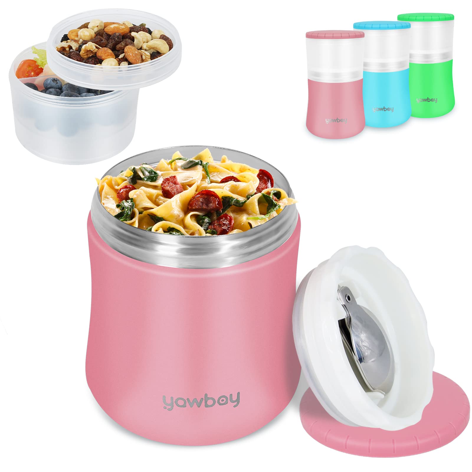 Yogurt Container, Insulated Food Container, 2 In 1 Cereal Cup On The Go,Stainless Steel Insulated Food Jar With Spoon, 28oz Thermal Lunch Pot For Soup ...